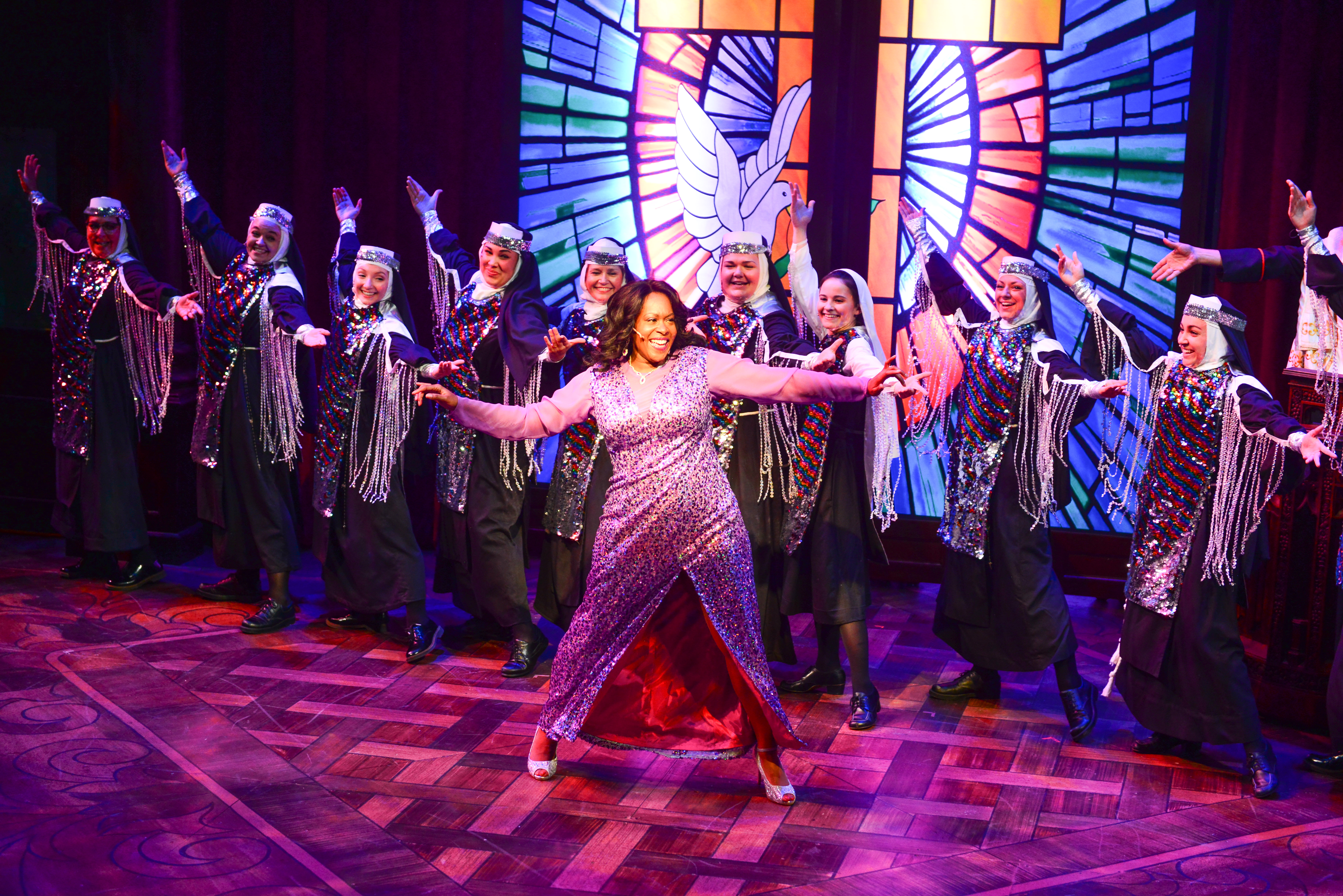 Based on the 1992 film of the same name, Sister Act tells the story of aspiring disco diva Deloris Van Cartier. Trying to work her way to the top in 1970s Philadelphia, Deloris falls in love with a gangster boyfriend named Curtis, and when Deloris witnesses him commit a murder she ends up in hiding on police orders in a convent whose parish has fallen on hard times. Though the sequin-free lifestyle doesn’t agree with her, Deloris finds her calling working with the choir, and breathes new life into the dusty convent while discovering a sisterhood she’s never had before.